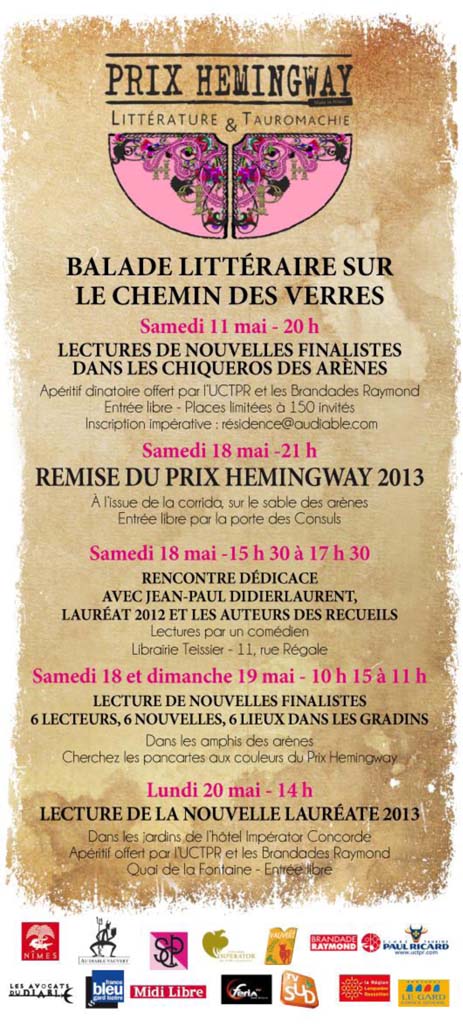 Dans nos pages de mars 2013, nous avions consacré un article au prix Hemingway. Seul prix littéraire dédié aux nouvelles et organisé par l’Association les Avocats du Diable à Vauvert. Nous vous avions tout dit sur ce prix, unique en France. Pour ceux qui l’ont oublié ou pas encore lu, vous pouvez le consulter sur notre site en cliquant sur le lien suivant : http://voir-plus.com/?p=1796