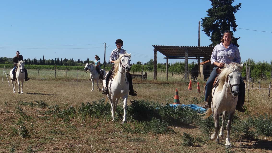 L’équitation Camargue s’inscrit pleinement dans une équitation de travail, en l’occurrence le tri du bétail et les activités de la manade. Les cavaliers et leur monture sont confrontés aux difficultés que l’on peut rencontrer à l’extérieur, éviter les trous, sauter un tronc, franchir un pont, traverser une gaze (marre ou roubine), refermer une barrière… Aussi Karen insiste beaucoup sur l’importance des exercices de maniabilité.