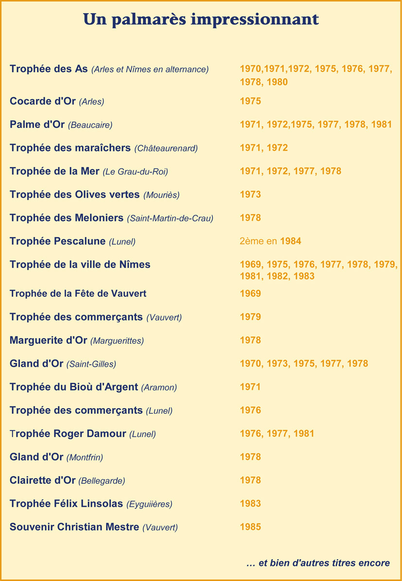 Son palmarès est élogieux et suffit à mesurer l’impact de Patrick sur la course camarguaise, il n’y a que Sabri Allouani pour avoir fait mieux.