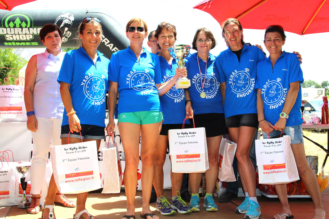 C’est sous une chaleur accablante que s’est couru le 1er bip bip Ekiden, un marathon en relais, organisé par le club « Courir à Vauvert » le dimanche 8 juin au lieu dit l’Espérion. Cette épreuve a vu la présence de 54 équipes de 6 coureurs ce qui pour une 1ère édition est tout à fait positif avec de nombreux clubs de la région dont celui de Védas Endurance (St-Jean-de-Védas) qui a réalisé le doublé en terminant 1ère équipe hommes et 1ère équipe femmes, « les Dynamites ». Les hommes de « Courir à Vergèze » faisant 2ème et 3ème. Les équipes de Bellegarde et des « flamants roses » ont fait quand à eux 2ème et 3ème chez les filles. En mixte, ce sont « Les Diablotins » des bipèdes de la vaunage qui s’imposent devant Manduel Métropole Marathon et les pompiers vauverdois. En ce qui concerne les entreprises, c’est l’UDM Vauvert qui remporte la mise devant Mc Do Aimargues et l’entente Pouget ERDF. L’Elan Vauverdois d’Athlétisme a été récompensée pour son équipe déguisée et c’est à noter, la présence de plusieurs équipes de vétérans 4 (plus de 70 ans).