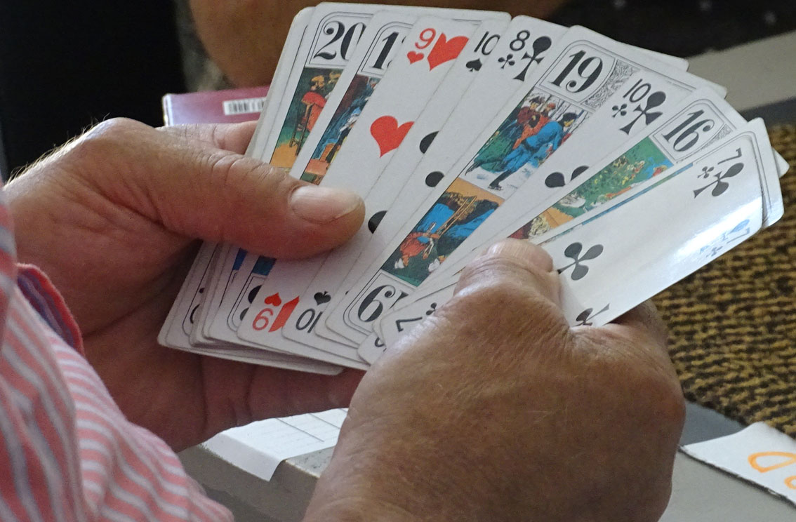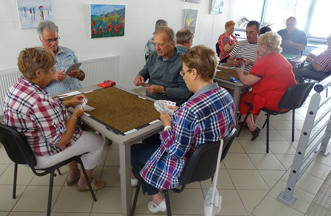 Depuis le début de l’année, Dany Pradier anime l’atelier Jeu de tarot du centre culturel Robert Gourdon qui compte déjà une petite dizaine de membres. Ce jeudi 19 juin, nos amateurs de cartes ont organisé leur premier tournoi en 20 donnes libres, 4 joueurs par table, avec changement de position toutes les 4 donnes.