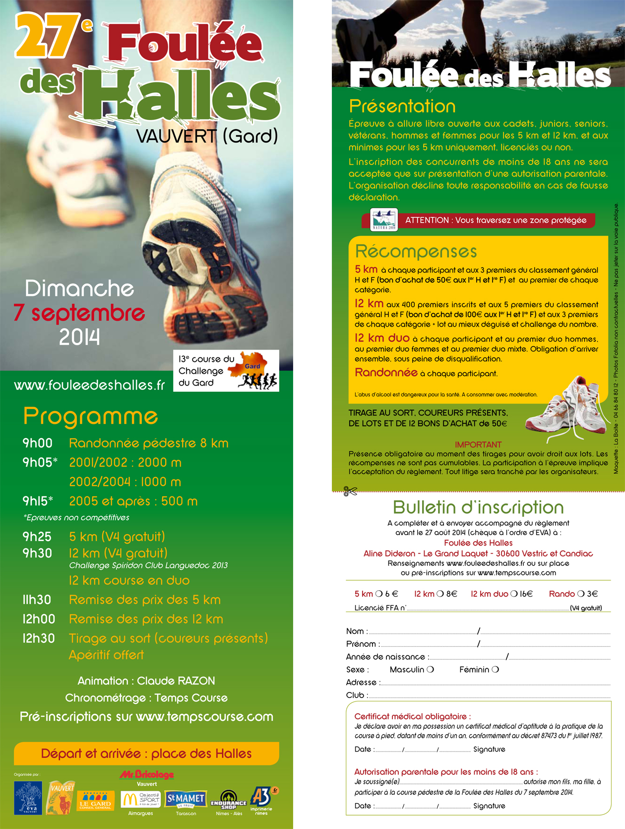 L’Élan Vauverdois d’Athlétisme (EVA) fondé en 1988 par Pierre Weiss, Yves Dideron, Rémi Boileau, a créé la Foulée des Halles. Aujourd’hui, c’est Christian Costa et son bureau (Monique Dany, Aline et Yves Dideron, Florinda Race, Danielle Bastin) qui ont en charge l’organisation de l’épreuve. Ils s’appuient sur une soixantaine de bénévoles qui tout le long du parcours assurent la sécurité, l’orientation, le ravitaillement des quelques 600 participants attendus. Au micro, le toujours fidèle et intarissable animateur : Claude Razon.