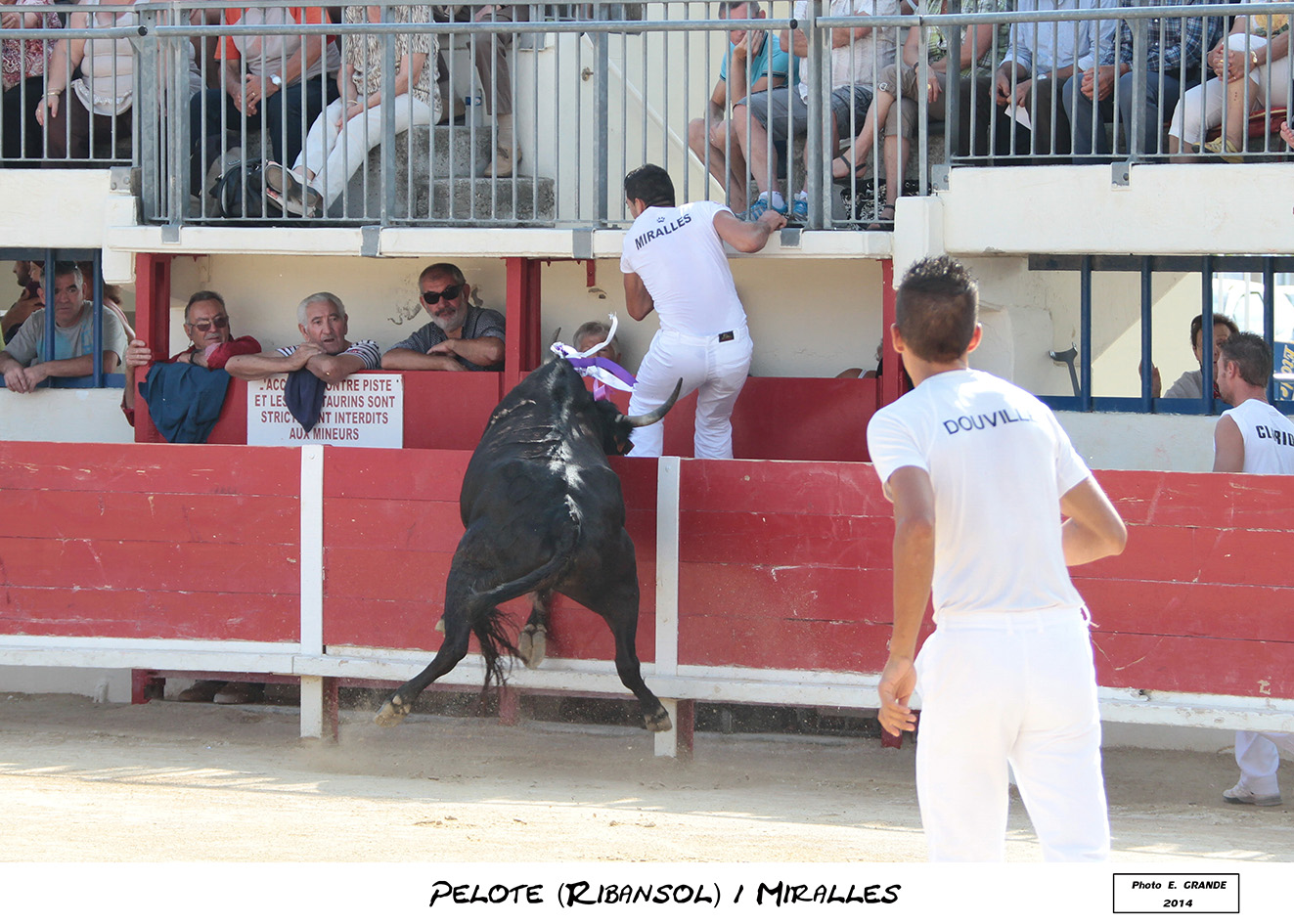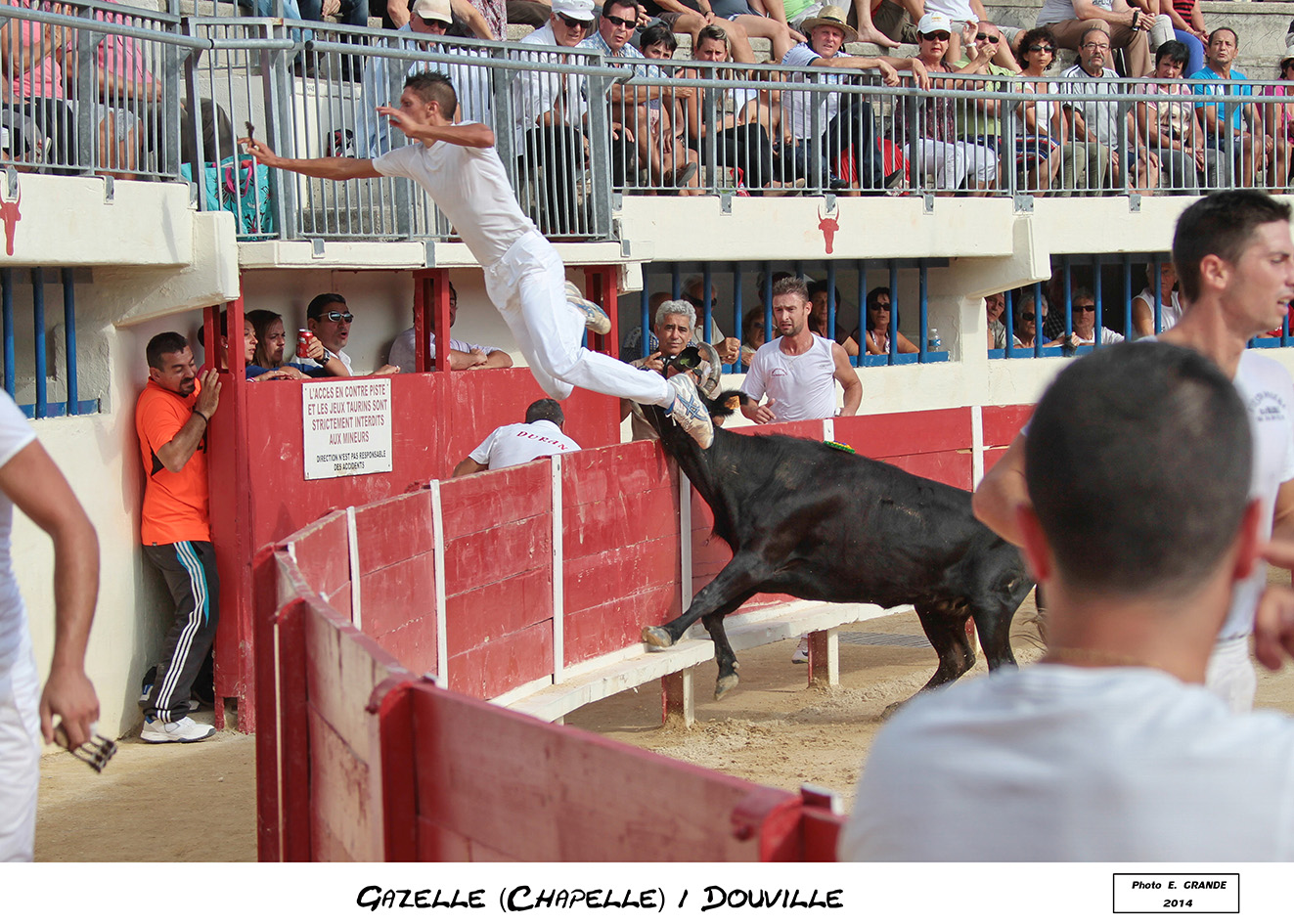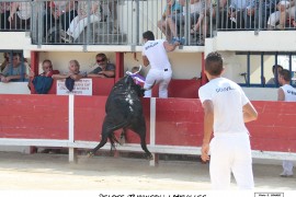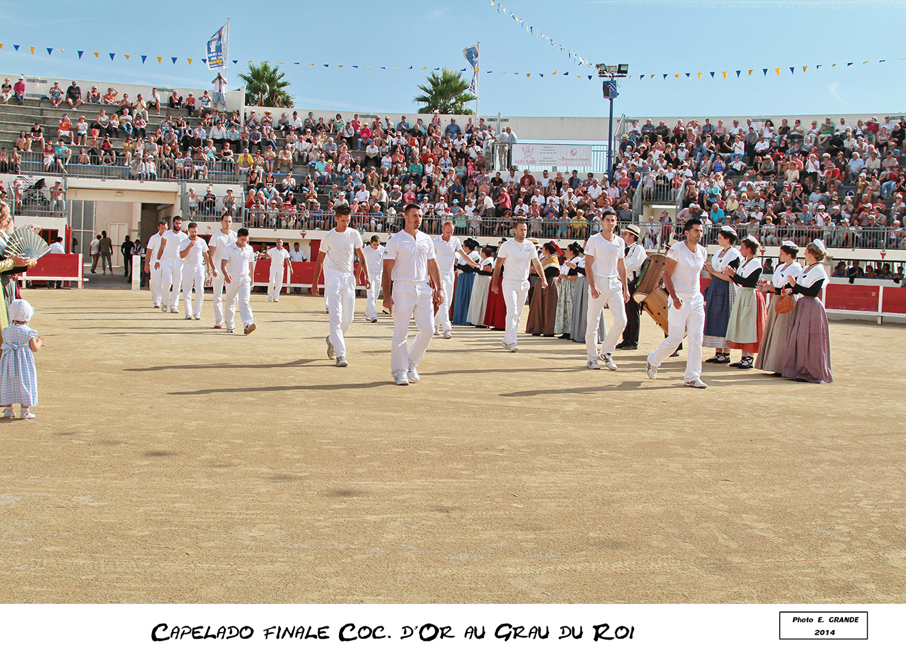 Une fois de plus les arènes du Grau du Roi accueillaient la finale des cocardières. Gradins pleins aux ¾, mais le spectacle a un peu déçu, essentiellement, par la faute des hommes. Ils étaient onze (plus 4 tourneurs) : Clarion, Boyer, Miralles, Guyon, Dumont, Ricci, Douville, Ferriol, Sanchez, Castel et Cartalade. Malgré ces quelques éléments en plus des « habitués » des vaches cocardières, la qualité ne fut pas au rendez-vous. Trop nombreux, trop maladroits (les vaches ont reçu des avalanches de rasets inefficaces), comme d’habitude, on a le sentiment d’être passé à côté de ce qui aurait pu être une bonne course.