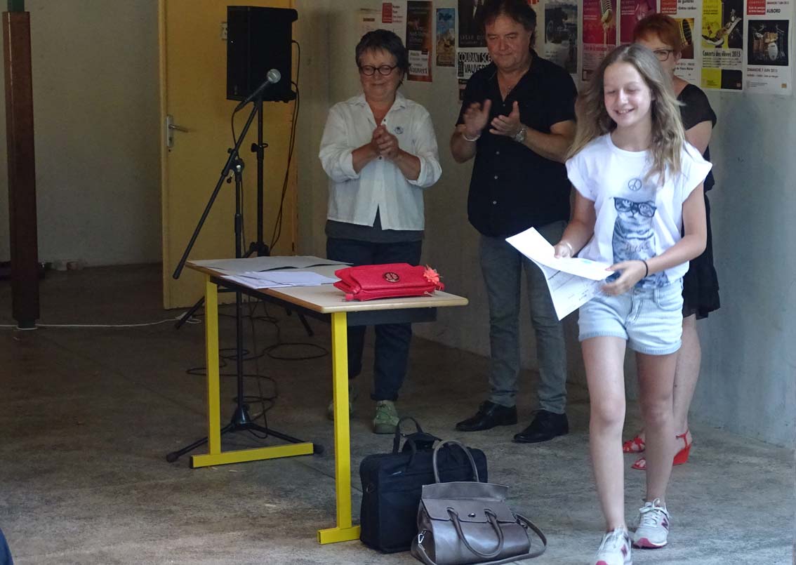 53 élèves ont reçu des mains des élus, Marie Pasquet, vice-présidente de la commission culture de la communauté de communes, Marie-José Doutres, Adjointe à la culture de la ville de Vauvert et du directeur de l’école, Philippe Guyon, leur précieuse récompense.