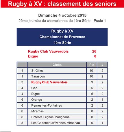 Le Rugby Club Vauverdois a fait montre d’une belle efficacité en l’emportant (26 – 0) contre Digne au stade Robert Pradille.