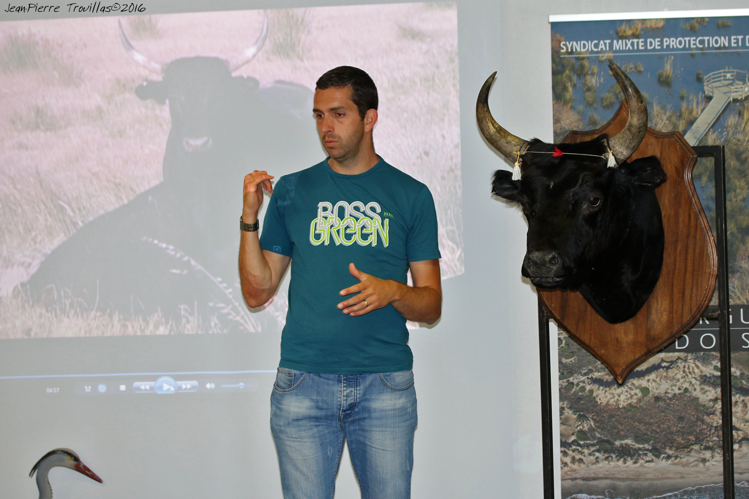 Le matin, les élèves ont pu tourner sur quatre ateliers qui leur étaient proposés : la pêche, le sagneur, le manadier et le raseteur. C’est ainsi que Simon Baudoin, animateur au Centre du Scamandre, a fait découvrir aux enfants la vie aquatique du marais. André Calba, a parlé de son métier de sagneur depuis la coupe du roseau à la main jusqu’aux méthodes mécanisées actuelles. Hadrien Poujol et Hicham Fadli, tous deux raseteurs et membres de la Fédération Française de la Course Camarguaise ont transmis leur passion de la course camarguaise. Jacques Blatière, manadier, accompagné de son gardian Fabien, ont présenté les différentes facettes de l’élevage des taureaux et l’indispensable cheval camarguais.