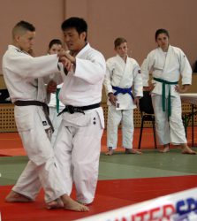 Durand deux heures, le champion a fait travailler avec une grande énergie une vingtaine d’élèves, à partir de minimes, issus du Judo- Club Saintois mais aussi des clubs alentours. Avec une bonne maîtrise du français, le maître japonais a révélé quelques tactiques et les bases d’un entraînement sérieux, sans négliger la tenue et le respect sur le tatami. L’entraînement collectif s’est déroulé également avec Céline Lebrun, Ceinture Noire 6ème dan, Championne du Monde, Championne d’Europe et Vice-championne Olympique, qyui était déjà l’invitée du tournoi de l’an dernier, Franck Wodviack du Judo-Club Arlésien, Ceinture Noire 6ème dan, et Samuel Lacquois, Ceinture Noire et entraîneur du Judo-Club Saintois. Les champions se sont montrés très attentifs et ont répondu aux questions des jeunes judokas avec beaucoup de gentillesse, sans oublier les séances de dédicaces. Une belle expérience pour nos jeunes Vauverdois !