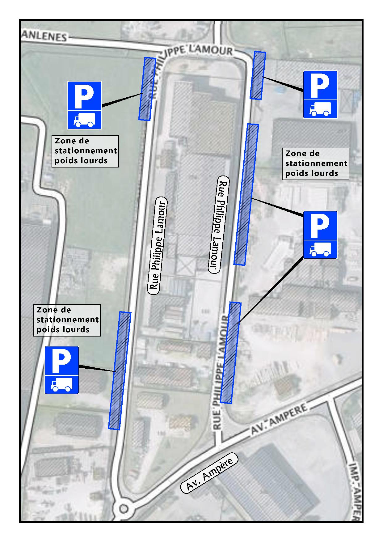 Création de zones de stationnement pour les poids lourds et les véhicules légers en zone industrielle rue Philippe Lamour.