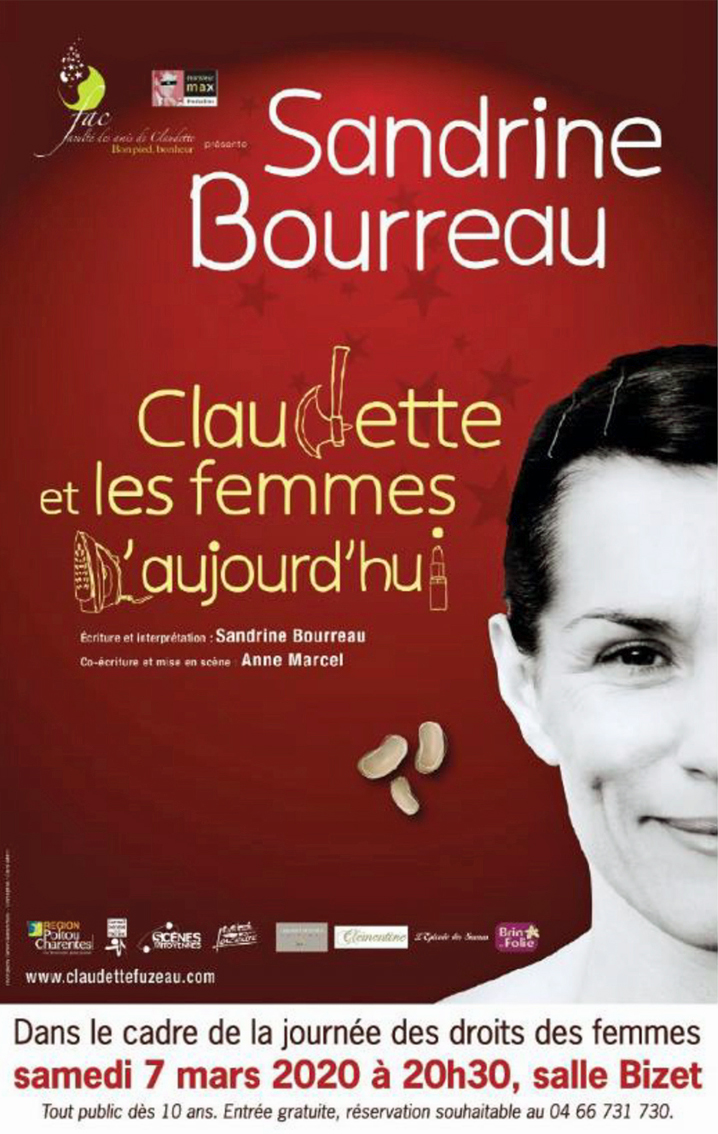 Dans le cadre de la journée internationale des droits des femmes, Sandrine Bourreau interprète Claudette et les femmes d’aujourd’hui, ce samedi 7 mars 2020 à 20h30, en salle Bizet.