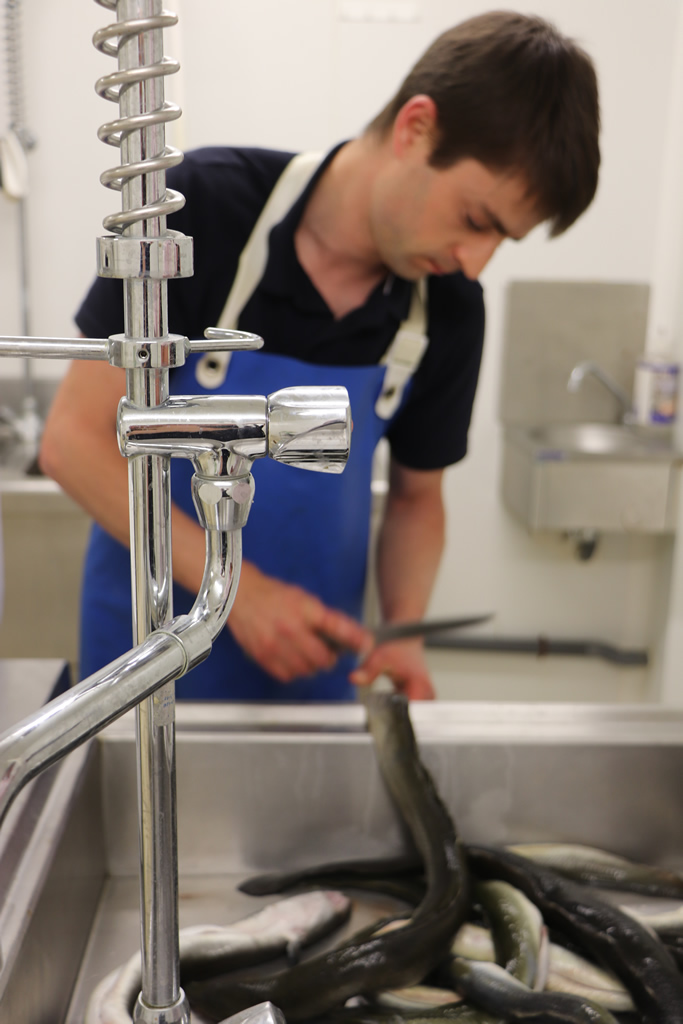 Dans ses fumoirs du marché gare, l’ancien torero prépare a développé une méthode de salage et fumage de différentes espèces de poisson de manière artisanale. Et ainsi, offre à sa clientèle des produits d’exception mais aussi des produits qu’il a remis au goût du jour comme l’anguille, poisson emblématique de la région, qui avait été oubliée.