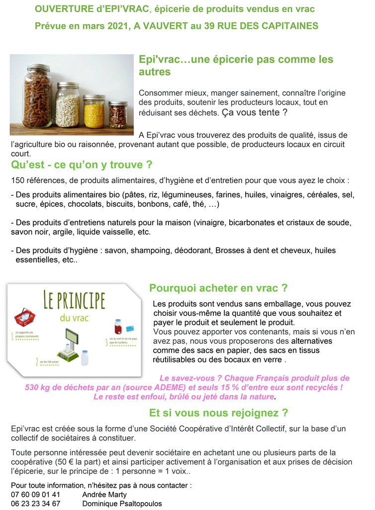 Epi’vrac 39 rue des Capitaines. Contact Andrée Marty 07 60 09 01 41