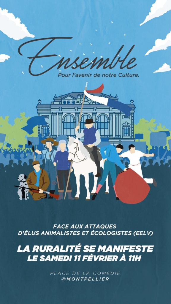 Organisée à l’appel de l’Union Jeunes de Provence et du Languedoc pour la défense de nos traditions, collectif regroupant 38 associations et 3000 adhérents dans l’ex Languedoc-Roussillon et la région Provence Alpes Côte d’Azur, la manifestation du monde rural s’organise.