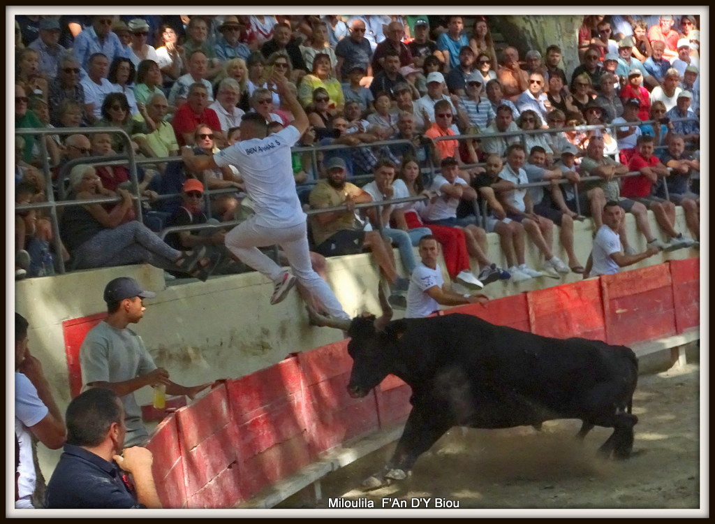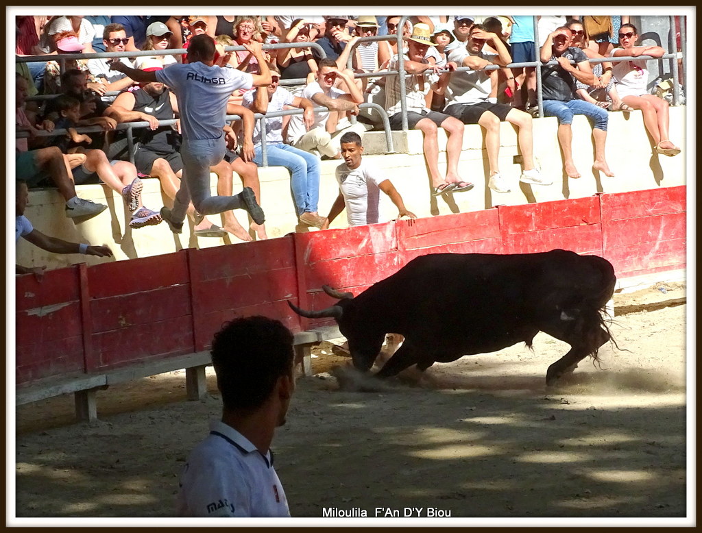 Aux ficelles, JAQUET veut surprendre et arrive à mettre CADENAS en difficulté sur une belle anticipation qui voit le raseteur arriver juste, juste, à la barrière. CADENAS se fait fort de le faire briller et y réussit fort bien. JAQUET se soulevant derrière lui lors d’une demande. KATIF voit son mourre passer au dessus des planches quand il saute pour échapper à sa vindicte. JAQUET se campe bien sur ses pattes et sa puissance est alors décuplée. MARTIN en fait les frais, serré par le taureau, il échappe de peu. CADENAS toujours dans la sape, le tire derrière lui ; les hommes passent, repassent. JAQUET semble choisir son adversaire. CADENAS et encore et toujours de la partie qui se porte à lui. BEN AMMAR doit trouver le temps long pour son arrivée à la barrière, le taureau serré collé à lui. La ficelle, en lambeaux part dans le crochet de KATIF ; rentre sa deuxième ficelle en musique, après avoir entendu par 7 fois le disque.
