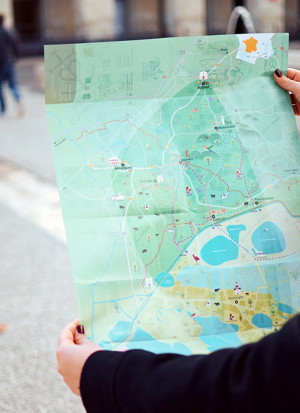 La contribution de Nicolas Palop, directeur artistique de l’agence Barcelona&Co et résident de Beauvoisin, a également permis la réussite de ce projet. Son double rôle de professionnel de la communication et d’habitant engagé a permis de concevoir une carte fidèle à l’identité et aux richesses du Cœur de Petite Camargue, ancrée dans son territoire et au plus proche de ses réalités.