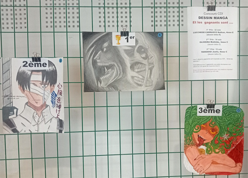 Aussi , les professeurs documentalistes, Mmes Rivemale et Chevalier ont eu l’idée de proposer un concours de dessins « manga ».