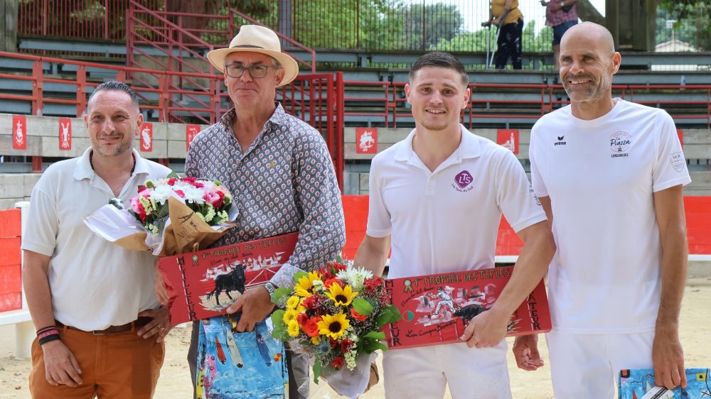 Le Club Taurin Lou Cosaque a organisé un concours de six manades pour le premier Trophée des Tèfles, qualificatif pour le Trophée de l’Avenir. Elégant de la manade Nicollin a remporté le trophée du meilleur taureau accompagnant les hommes à la barrière , Maxence Chanat , par sa constance a obtenu celui de meilleur animateur. Une remise des prix par le bureau du CT Myriam Bourzes, Evelyne Rigon, Jean Marc Fouster , Alain Lyon et Jean François Angosto créateur des trophées , deux œuvres uniques, hors du commun , sur une planche de barrière brisée.