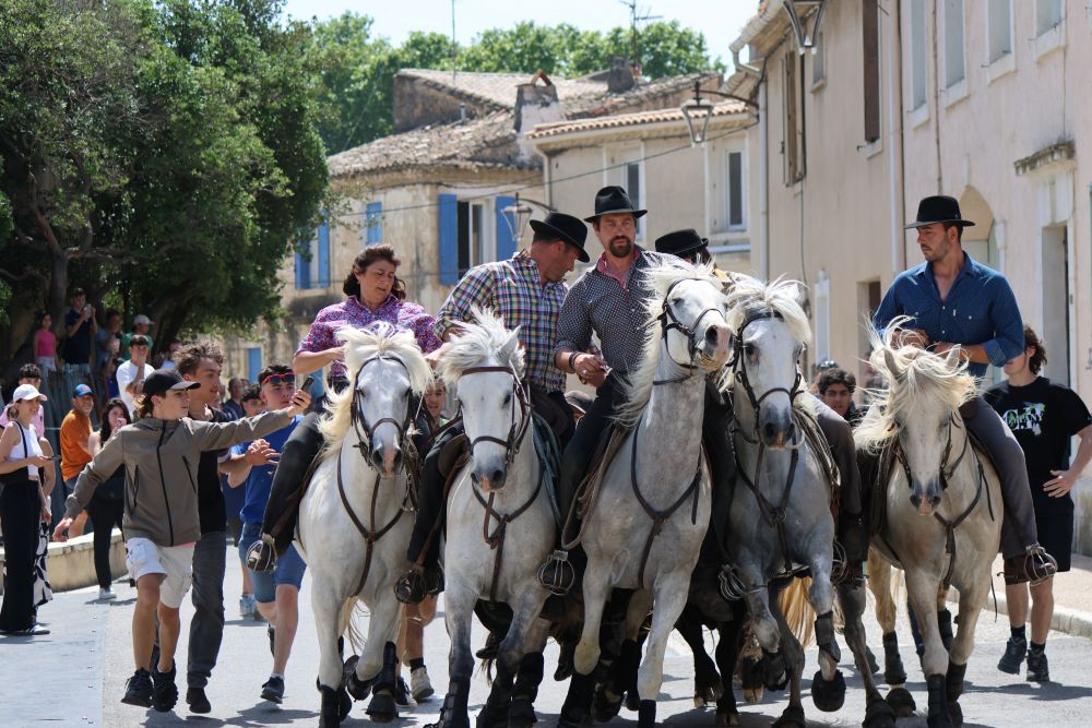1970 -2025, la Camargue taurine a été à l’honneur pour ce week-end d’anniversaire. Une ambiance électrisante pour la course de nuit, le vendredi soir , les vachettes de la manade de Franquevaux ont fait le spectacle avec la jeunesse et les encouragements stimulants de l’animateur Frédéric Meseguer, au micro. Abrivado et bandido , menées par la manade Cayzac et ses gardians, le passage des taureaux entourés des chevaux au centre du village « reste un moment en dehors du temps, un symbole traditionnel et émotionnel » . Le samedi course d’étalons neufs , souvent spectaculaire, qui a son public. Le dimanche course de l’avenir, 1er trophée des Tèfles (surnom donné aux habitants de Beauvoisin).