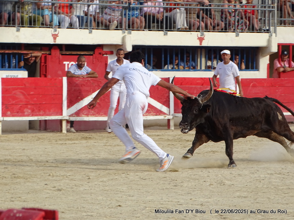 Fin, élancé, il entre en piste avant de chasser tout intrus sur son passage. Droite et gauche se disputent ses faveurs, il se déplace tout en évaluant le danger, fait volte face défiant l’adversaire. Vif, il est difficile de le canaliser. Zekraoui, l’engage et se retrouve serré aux planches, Cadet démontrant ainsi sa vivacité à répondre, Carmen retentit. C’est le temps des attributs qui s’enchainent à la suite ; Oukharti le premier gland, Félix, dans la coupe, le deuxième gland pour Naïm et à Chekade la cocarde. Aux ficelles, bien calé, il jauge l’adversaire, Il faut entrer à lui pour obtenir son aval, ce que fait Félix avant que tous, chacun leur tour s’engagent avec plus ou moins de succès. Chekade fait monter la pression, il le décolle, mais Cadet revient à sa position première et c’est cul aux planches que le quart d’heure se finit. Retour en musique et par 3 fois, Carmen en piste.