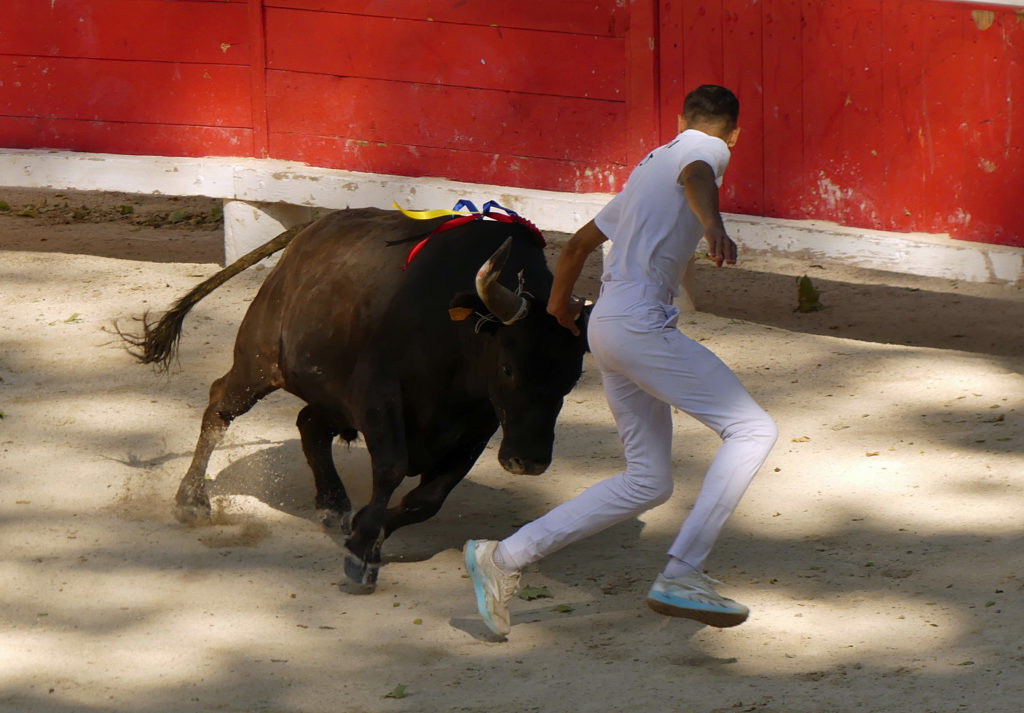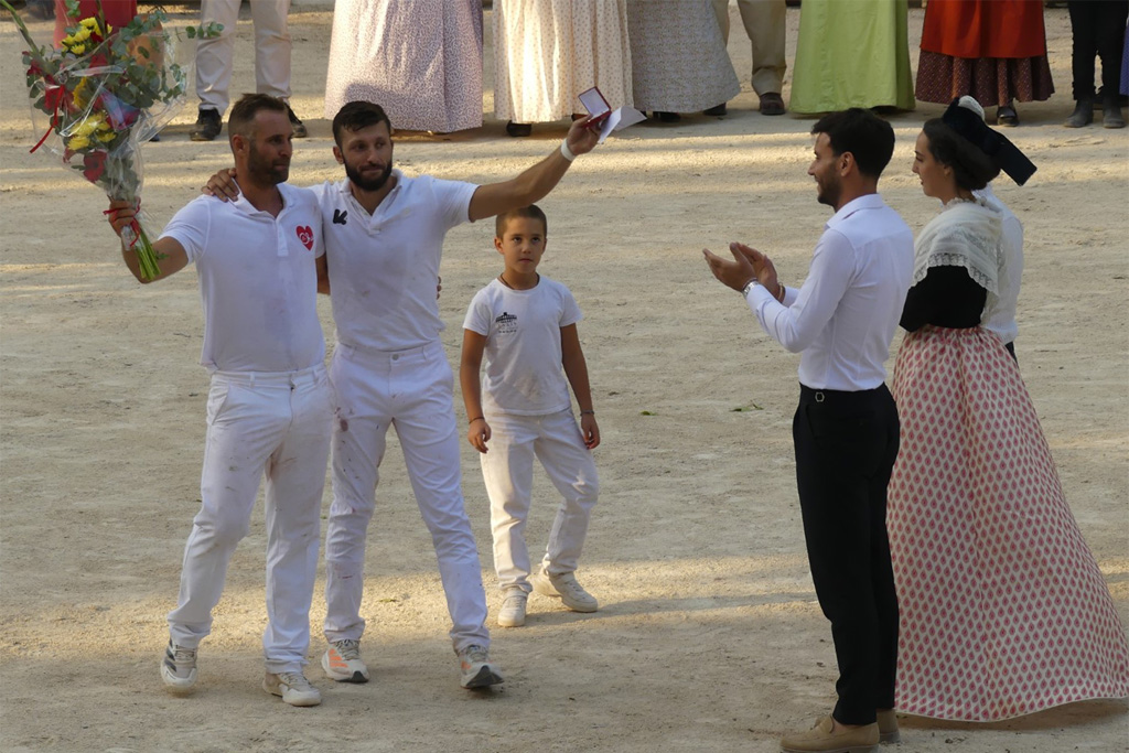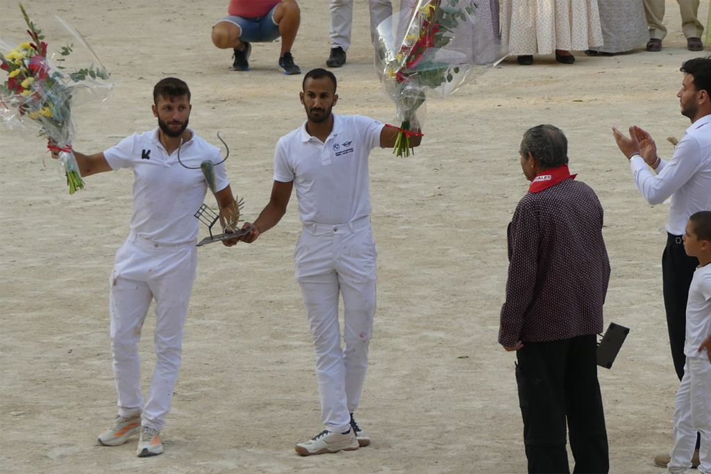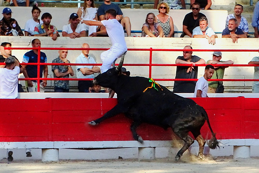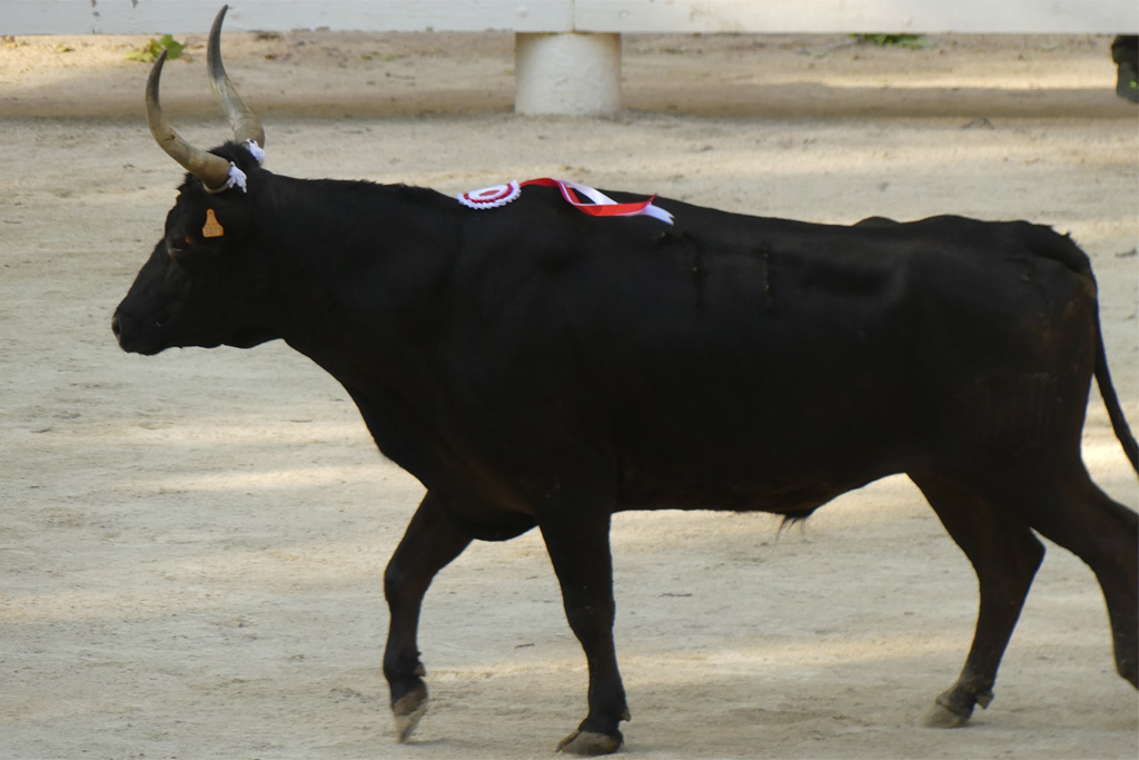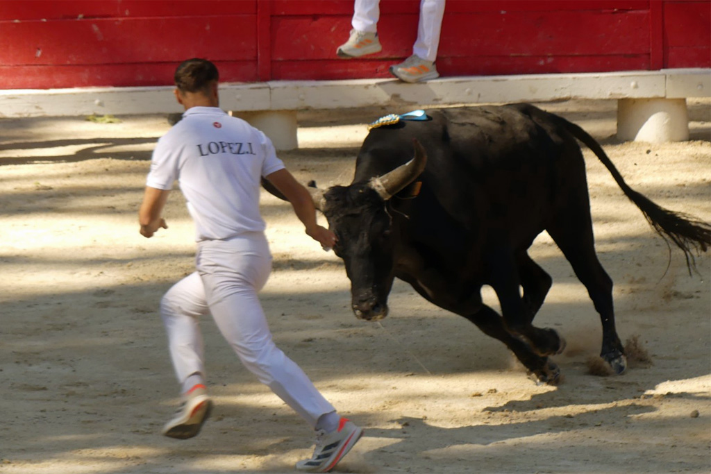 Naïm subit sa foudre jusqu’en contre-piste le tout en musique, Marignan lui cueille le premier gland, Zekraoui parvient toutefois à lui ravir la cocarde puis le deuxième gland. Arrive le tour des ficelles. Placement, toujours là où il faut et comme il le faut. Zekraoui (3 fois), Naïm, (4 fois) et Marignan le sollicitent et énormes réponses jusqu’à la finition plus que fracassante. Il se soulève après chaque raseteur, le cherchant de son mourre jusqu’en contre piste, parfois retombant derrière lui. Des actions qui font vriller les planches. Comment alors pouvoir se servir sur ses cornes ? Imprenables, elles sont ses ficelles, même primées à 700 €. Il les rentre fièrement sur l’air du Toréador. 10 Carmen joué en piste pour des actions hors normes.