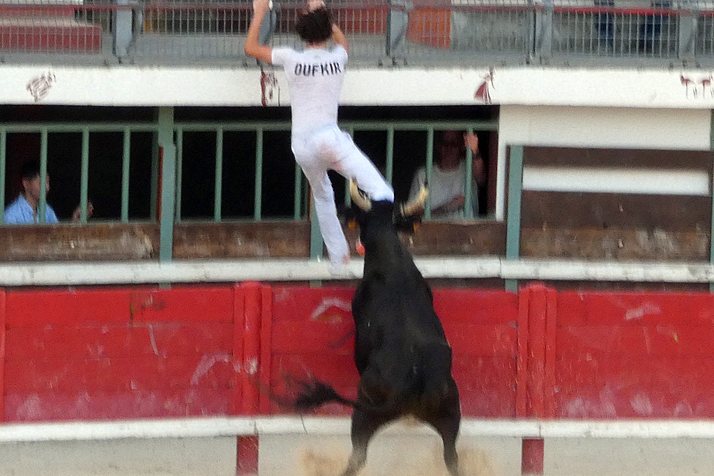 Domino (Plo) – 350 : grosse envolée derrière Hassab à la 5e, Oufkir 8e. Il fait sa loi, placé, et fonce dès qu’on l’approche. La cocarde n’est coupée par Chanat qu’à la 12e. Second gland pour Ranc à la 14e. Ficelle au toril avec les honneurs.