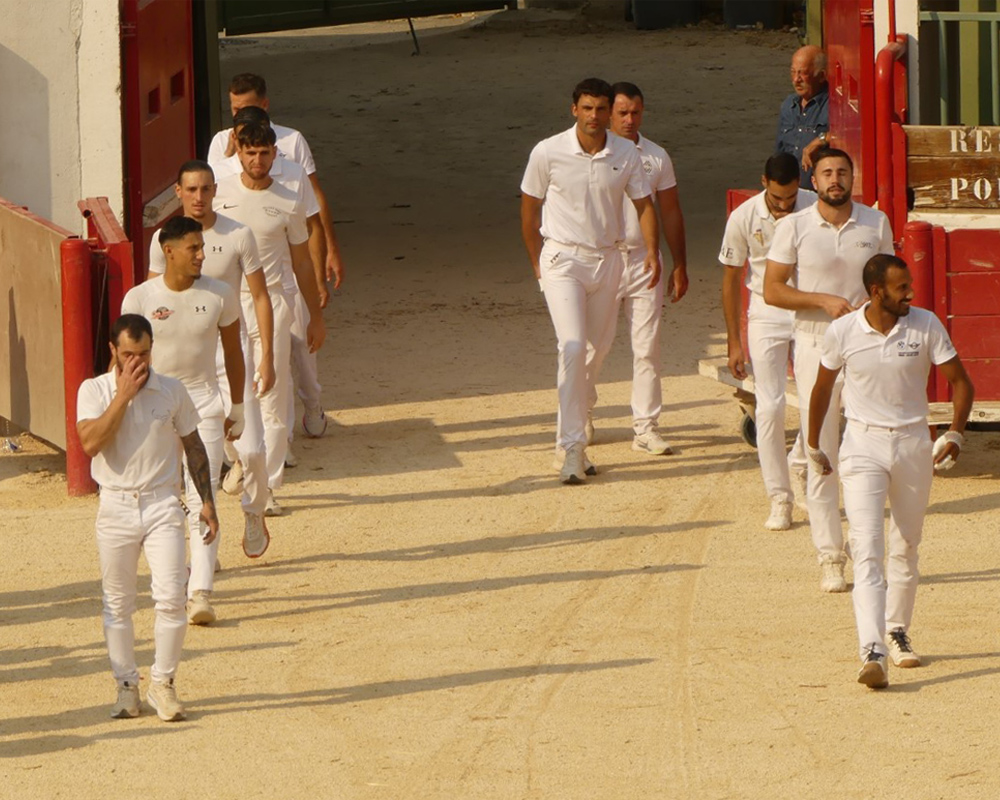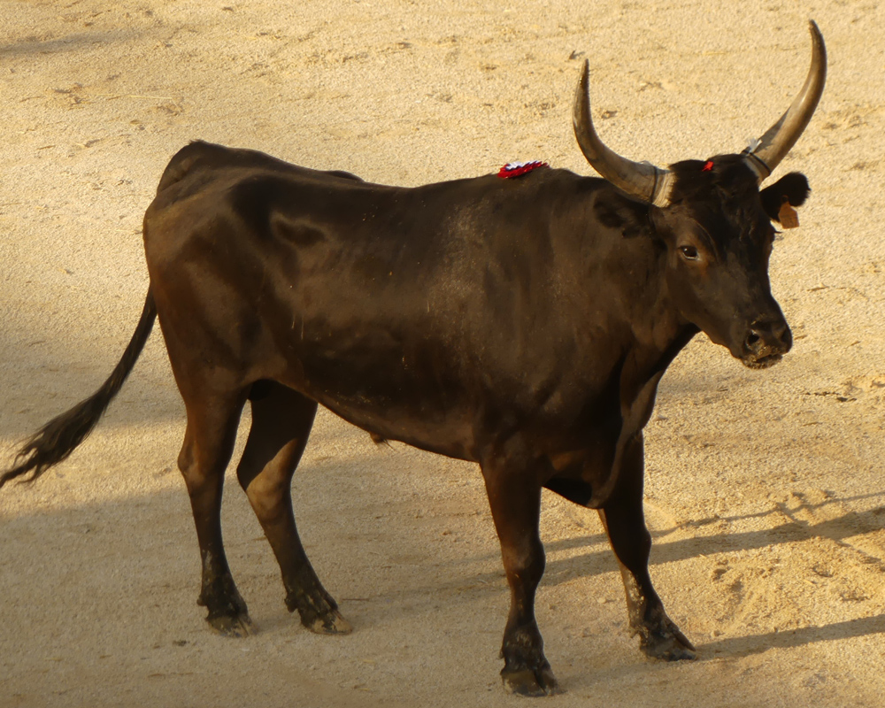 Aux ficelles, Ripart fait le vide. Tom Charrade le sollicite la réponse fuse. Ripart est présent, il voit, anticipe Oukharti qui doit pousser une pointe de vitesse pour se sortir des cornes du taureau. Puis Ripart se déplace et se cale ; délaisse la gauche et porte son attention sur la droite. Répond avec force à Lopez. Oukharti et Lopez vont à tour de rôle le solliciter tant et si bien que l’on peut voir des rasets aboutis en puissance et détermination. Par 3 fois pour Oukharti et par 2 fois pour Lopez, Carmen se joue, les actions sont belles. Ripart répond prestement et défend chèrement ses attributs. Sur ces passages, la ficelle se déroule, alors là… c’est l’assaut ! 600 € ! Une chape sur le taureau ! Le Président de course demande de ne pas se disputer les passages ! Ah, oui ! Plus rien ne compte ! Mais la ficelle que nenni pour les hommes ; elles restent toutes les deux sur les cornes et rentrent au toril. La musique de Bizet l’accompagne. 9 Carmen en piste.