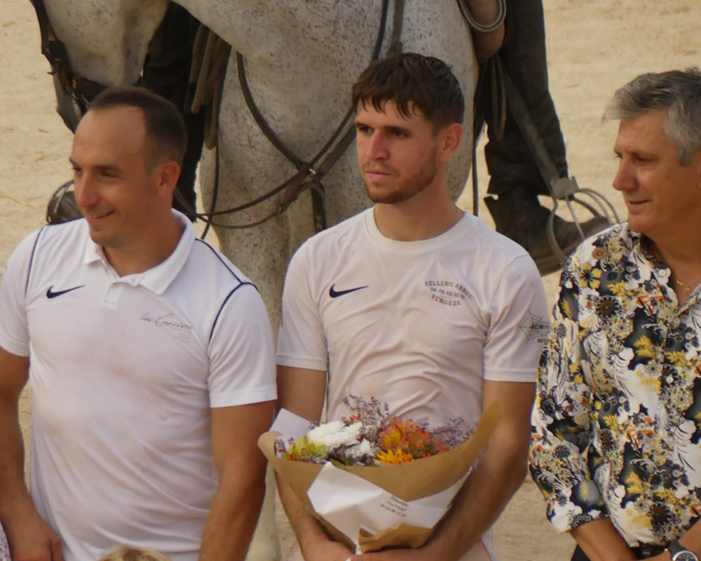 Déjà dans la force de l’âge, il aborde la course avec détermination. Mais, Lopez pour la coupe, Zekraoui pour la cocarde et Lopez et Tom Charrade, pour les glands le déshabillent au plus vite. C’est vrai, il fait très chaud !