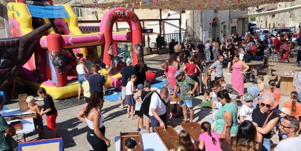 Cette année, la journée des enfants s’est déroulée sur la place du Temple, transformée pour l’occasion en un espace festif et ludique. Les plus jeunes ont pu profiter d’un château gonflable, de nombreux jeux, de cadeaux, ainsi que de balades à poney encadrées par les Écuries du Grand Mas. Un événement attendu et apprécié, où petits et grands partagent ensemble la joie de vivre.