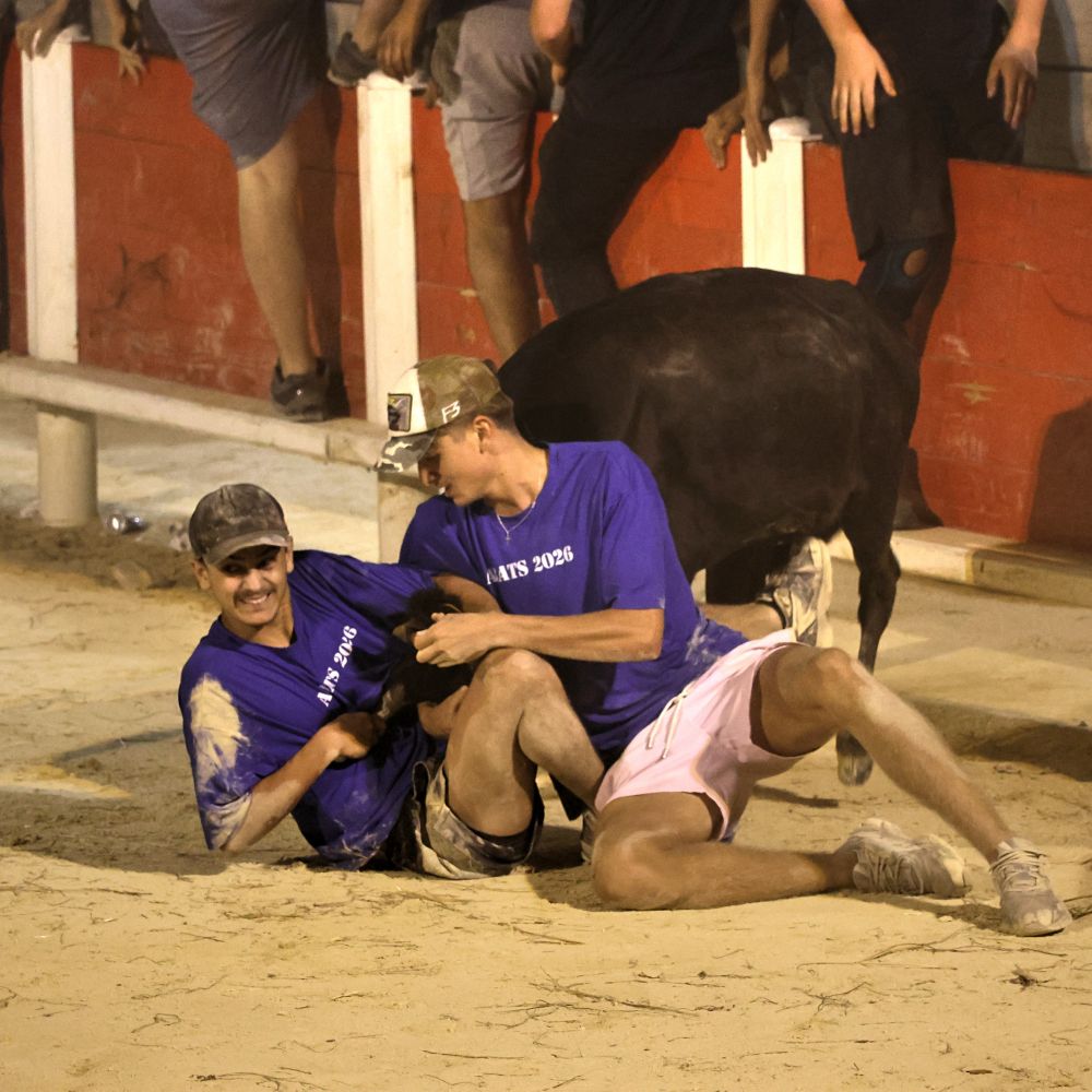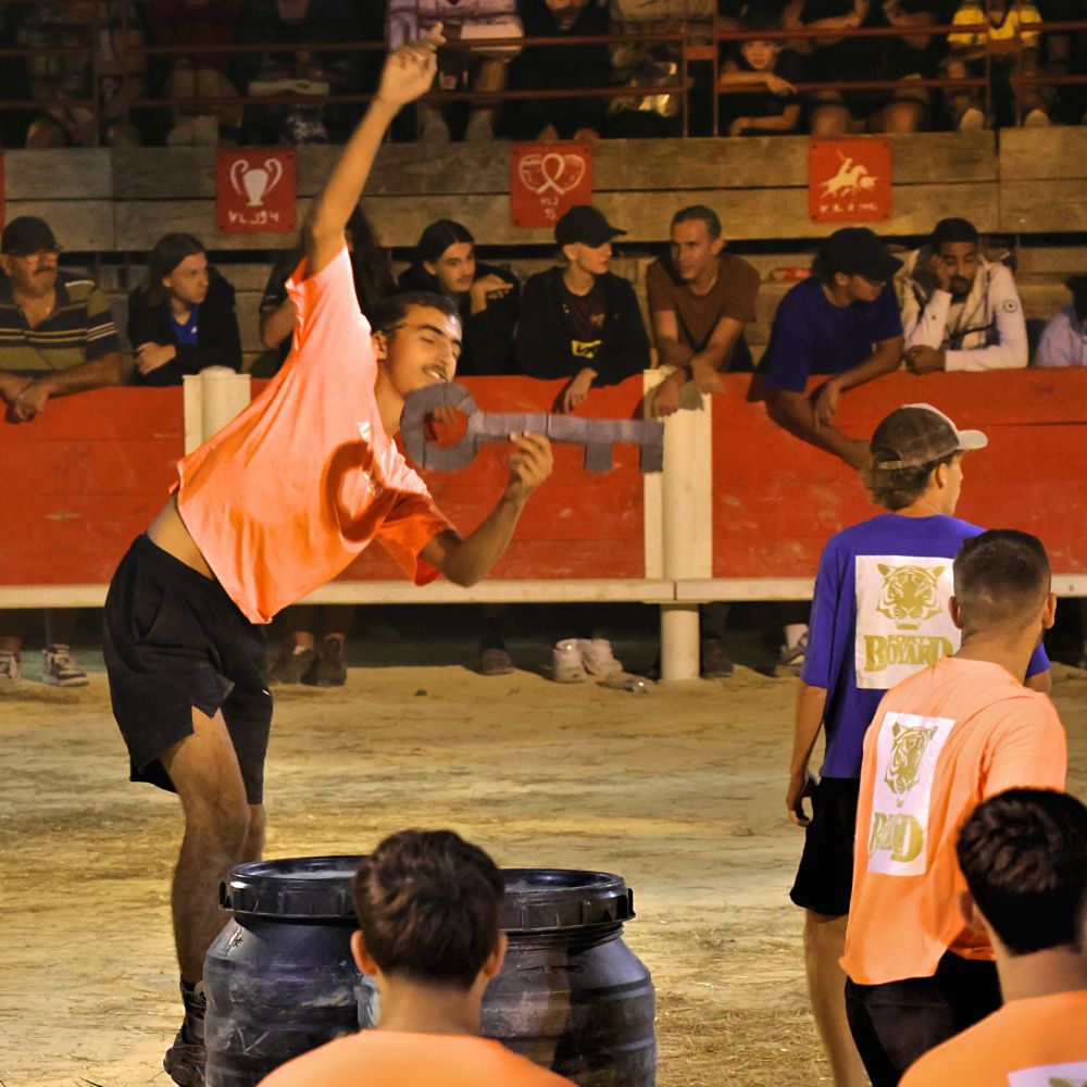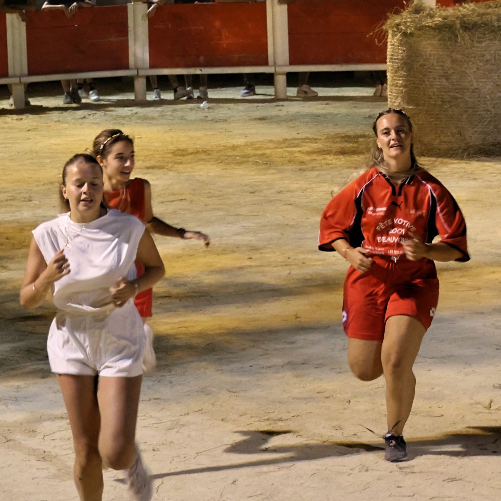 La charlotade des abats à Beauvoisin est l’un des temps forts de la fête votive. Des arènes combles, avec cette année « Fort Boyard » pour thème, des jeux placés sous le signe du défi et du rire , réservés aux filles et aux garçons avec les vachettes de la manade Martini, venant pimenter chaque partie. Avant le lancement des jeux un jeune abat , au micro est venu rassurer le public sur l’état de santé du de son camarade Alexis, victime d’un accident lors de l’abrivado du matin. Frédéric Méséguer, l’animateur consacré des animations taurines a repris le micro exerçant de main de maître son talent de présentateur contribuant à garantir l’ambiance. Les participants se sont affrontés par équipes pour récolter des clefs, avec des jeux inspirés de l’émission culte, alternant épreuves ludiques et d’agilité, tout en gardant cette dose d’autodérision et de bravade qui fait le charme de la charlotade. Sensations fortes, sous les rires du public et la complicité de la jeunesse locale , énigmes du Père Fouras et des vachettes qui n’ont pas boudé leur plaisir. Grand moment avec un rodéo taureau aussi rapide que spectaculaire.