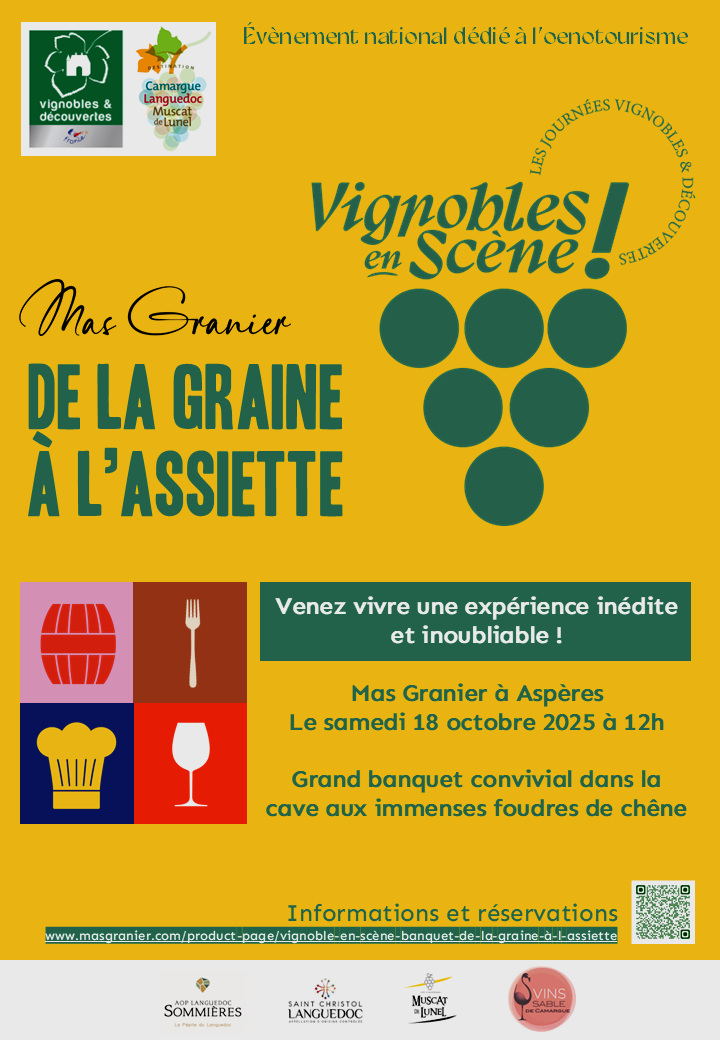 Réservation en ligne ici https://www.masgranier.com/product-page/vignoble-en-sc%C3%A8ne-banquet-de-la-graine-%C3%A0-l-assiette