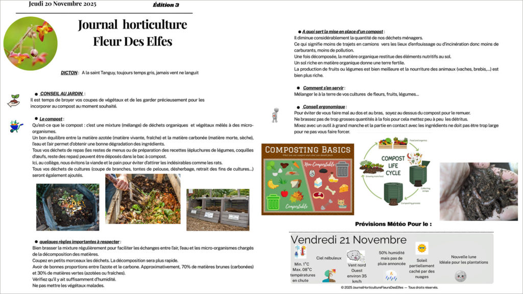 Chaque numéro est affiché sur différents écrans du collège et visible par tous, adultes et élèves. Bien utile, également, pour les prévisions météo des jours à venir.