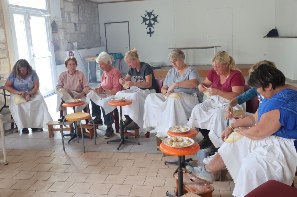 La confection des oreillettes à Beauvoisin est devenue un rituel communautaire organisé dans la salle construite par le pasteur. Les habitantes se réunissent, chacune à son poste : certaines étirent la pâte sur leurs genoux pour obtenir la finesse tant recherchée, d’autres s’occupent de la découpe, de la cuisson ou de la distribution des commandes.