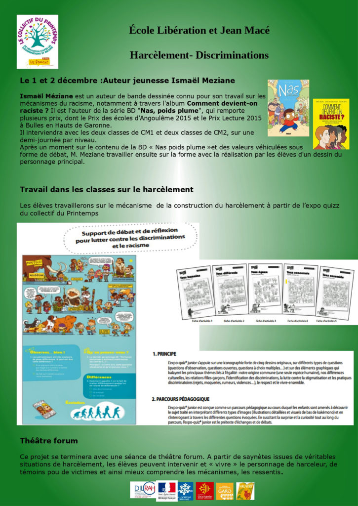 Dans le cadre de la lutte contre le harcèlement et les discriminations, Ismaël Meziane interviendra dans les classes pour travailler avec les élèves.