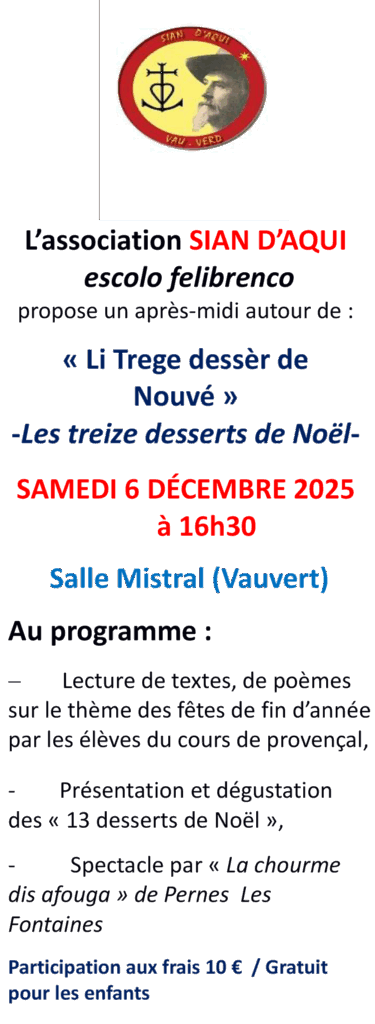 Auteur/autrice de la publication :Voir Plus Publication publiée :03/12/2025 Post category:A la Une / Art & culture / D'une génération à l'autre / Vauvert Partager Partager ce contenu Ouvrir dans une autre fenêtre Ouvrir dans une autre fenêtre Ouvrir dans une autre fenêtre Ouvrir dans une autre fenêtre Étiquettes: La chourme dis afouga, Sian d'Aqui Voir Plus Journal numérique de la vie locale et des associations de Petite Camargue. Read more articles Article précédentL’association les Forces Vives de Beauvoisin a présenté son annuaire 2026 des Professionnels Commerçants et Artisans Article suivantLe collège a participé au cross départemental à Rodilhan Vous devriez également aimer « J’adopte un arbre », ce samedi 22 novembre au parc de l’Espérion 21/11/2025 Atout Philo : un bel hommage aux grandes dames de la littérature française 21/03/2023