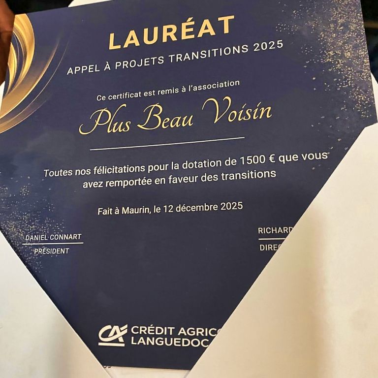 Plus Beau Voisin, lauréat 2025 dans le cadre d’Appel à projets Transition du Crédit Agricole