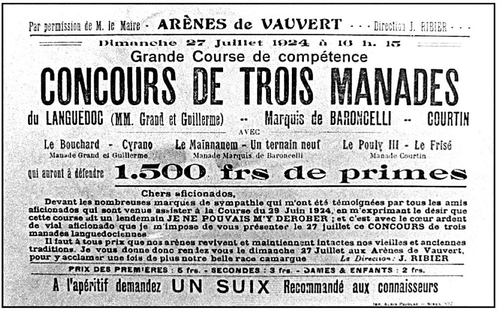 En 1927 il vend des bêtes à Laurent Mistral, le nouveau manadier d’Eyragues.