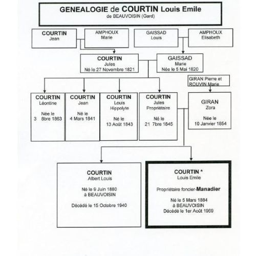 « Louis Emile Courtin naît à Beauvoisin le 05 mars 1884. Il décèdera 84 ans plus tard toujours à Beauvoisin soit le 1er août 1969. Je le voyais paraître dans le village lorsqu’il faisait ses courses« .