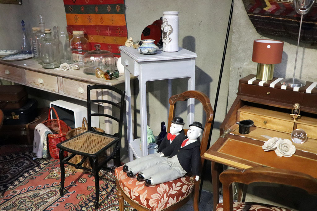 Faire les vide-greniers était une échappatoire qu’elle a décidé de transformer en activité principale après avoir fait quelques années dans la restauration. La brocanteuse a démarré avec une petite boutique à Uzès puis un hangar à Lussan qu’elle ouvre en saison.
