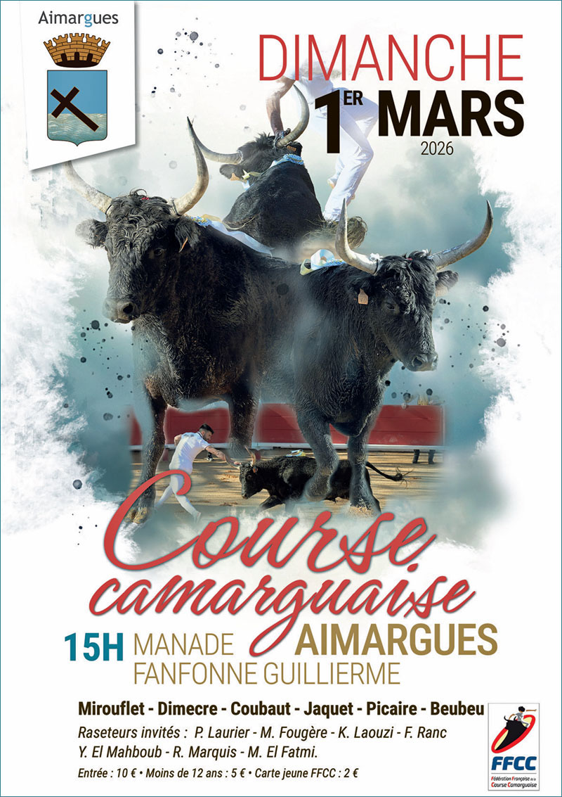 - 15h Course de la Manade Guillierme ouverte par une capelado d’arlésiennes. C’est sur cette course camarguaise que se terminera cette magnifique journée d’ouverture de la saison taurine.