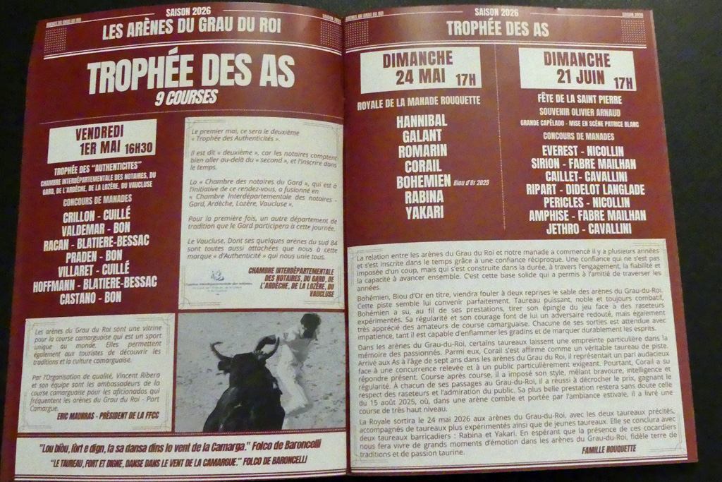 Les plus grands cocardiers seront présents tout au long de la saison et il est annoncé par Vincent Ribera lors du Trophée de la Mer, Bohémien (Biòu d’Or 2025) et Yakari de la Manade Rouquette ainsi que Castella (Biòu d’Or 2023 et 2024), Cobalt et Vicaire de la Manade Saumade. De quoi faire vibrer les arènes.