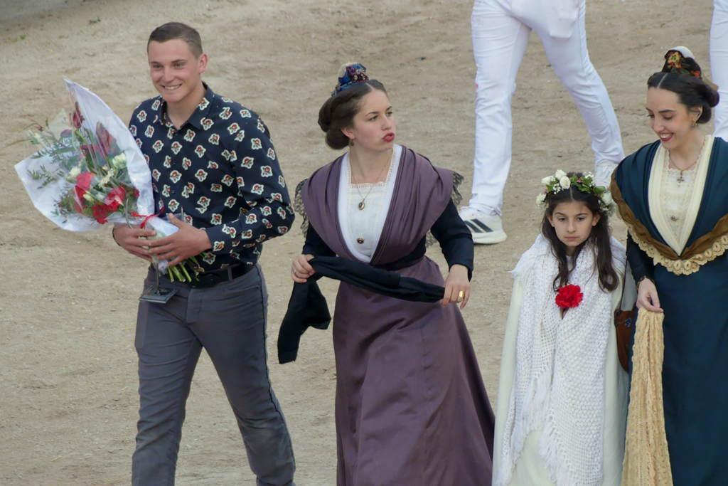 C’est le début de la Feria de Pâques et en ce Vendredi Saint, c’est dans une journée ensoleillée mais ventée que se déroule la course dans des arènes à demi pleines.